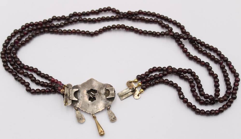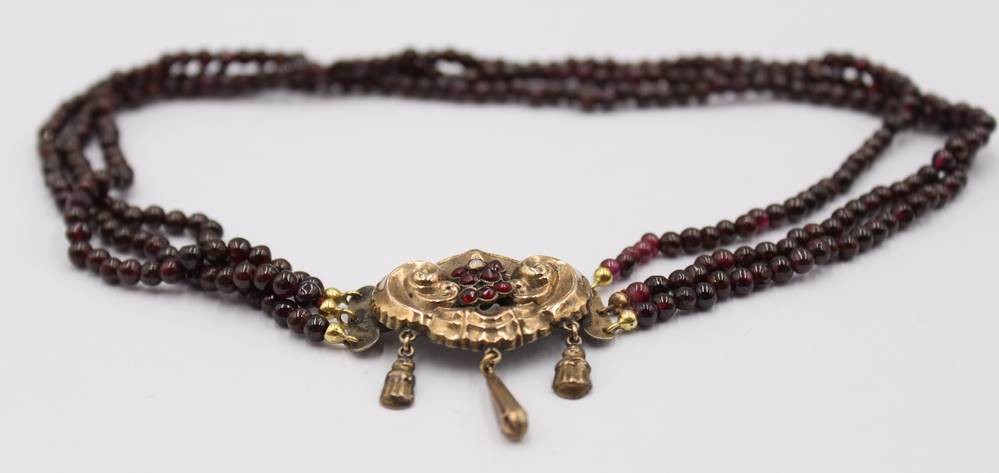 Biermeider-Kropfband, Granat u. Schaumgold, 3reihige, ca. l-34cm [1]