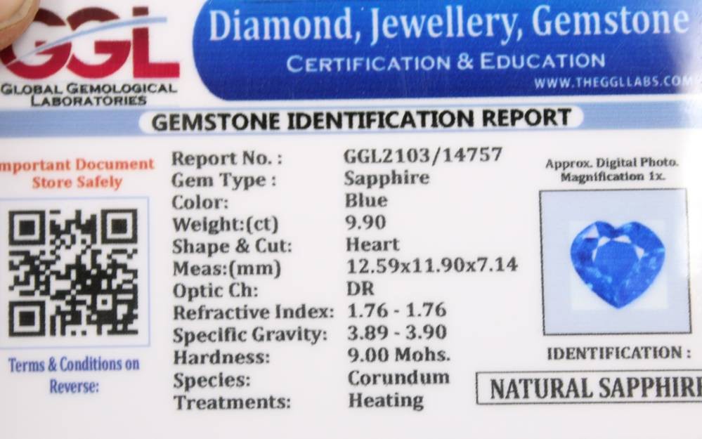 blauer Saphir, herzförmig, anbei Zertifikat [1]