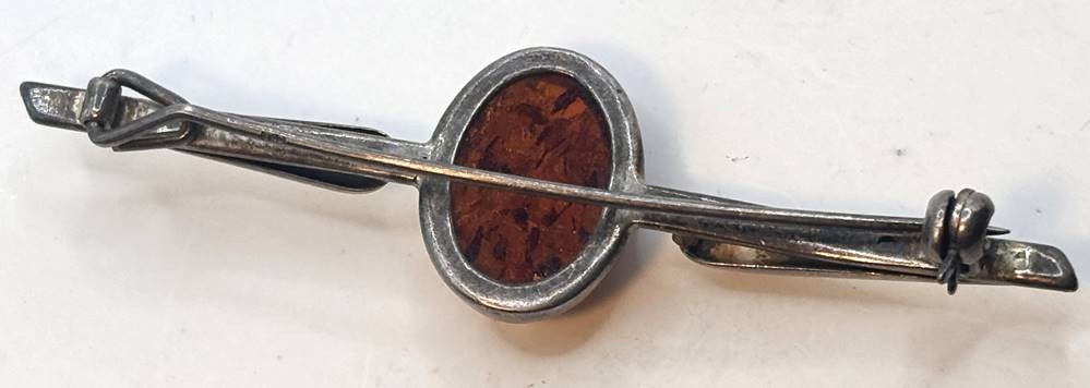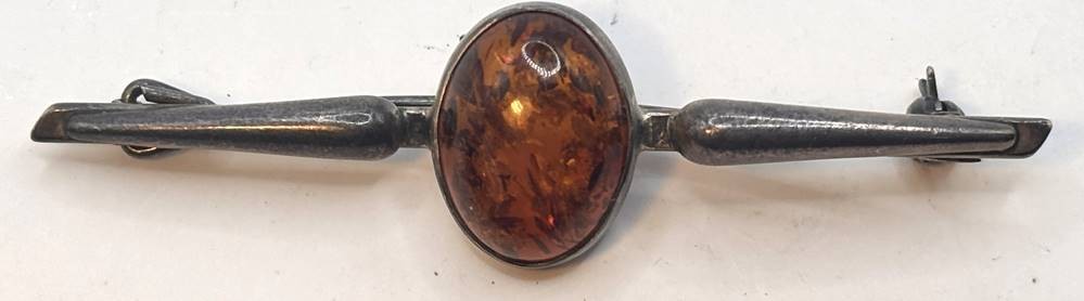 Breite Silbernadel mit Bernstein Cabouchon, B-6,5 cm, 6,8 gr [1]