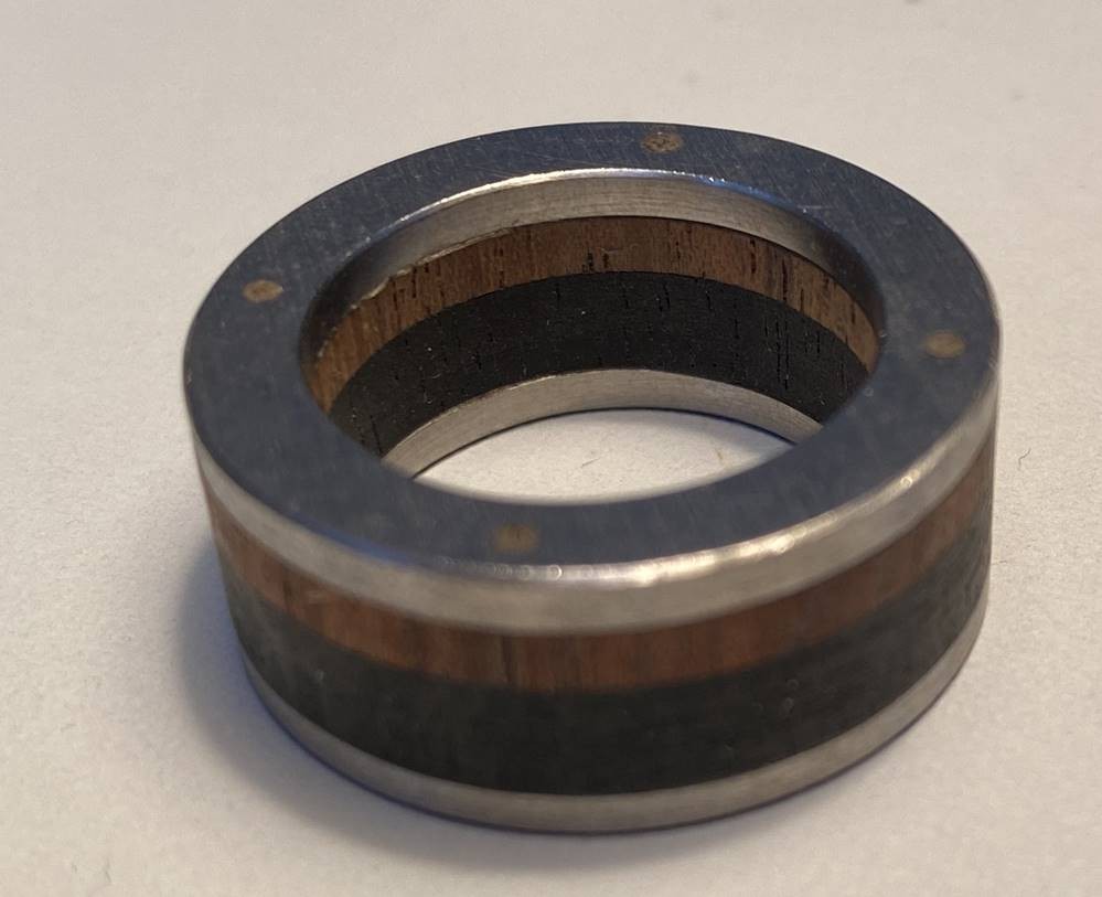 breiter Edelstahlring mit 2x Holzeinlagen", RG 56, Neuware aus Juweliersauflösung [1]