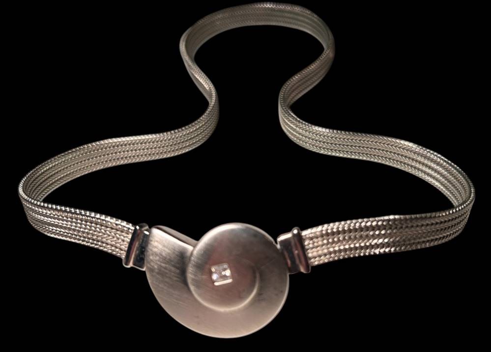 breites Collier "Pierre Lang", versilbert mit klaren Stein, Magnetschliesse5 L-ca. 45 cm [1]