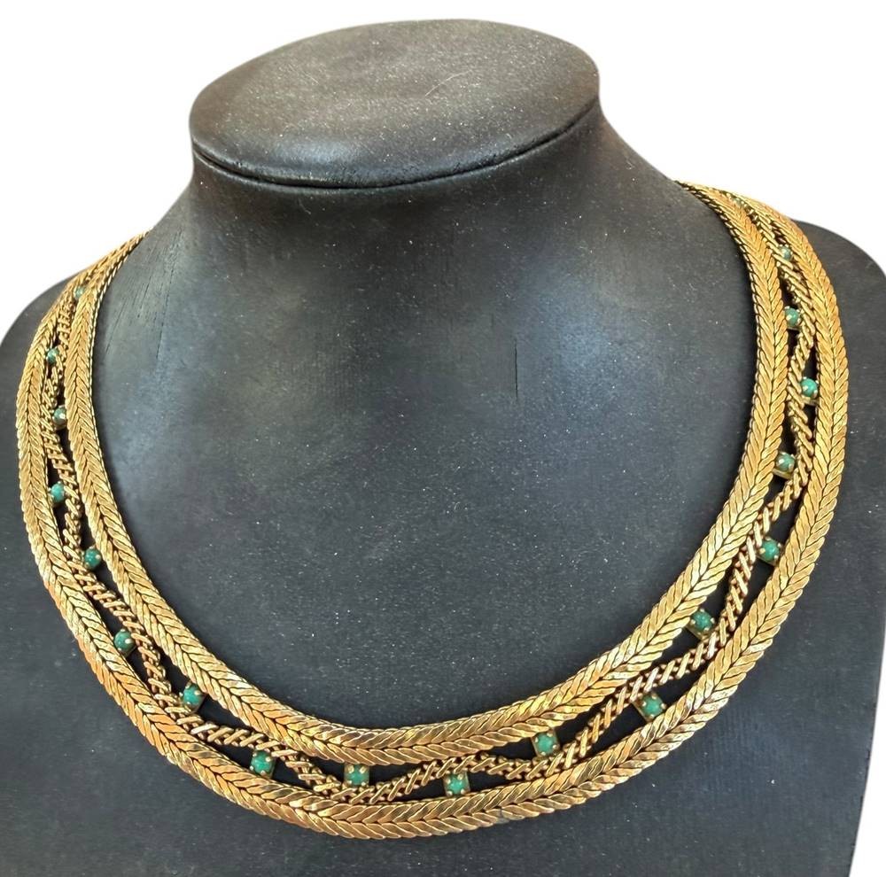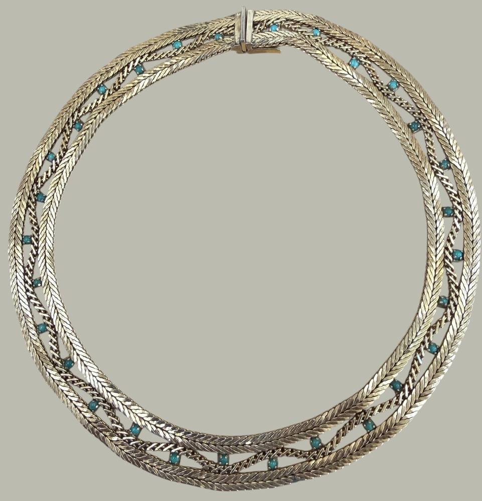 breites Halsband "Grosse" 1965, Double mit grünen Steinen, B-1,5 cm [1]