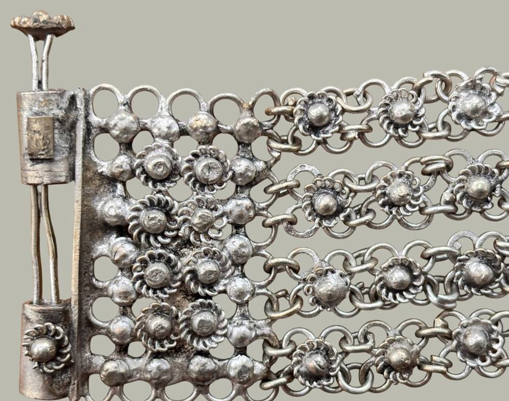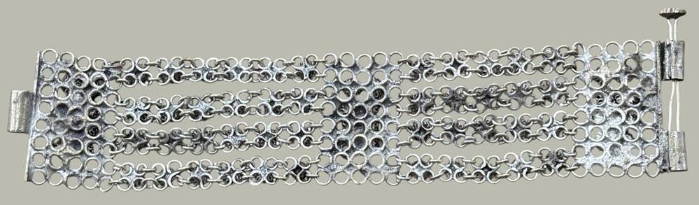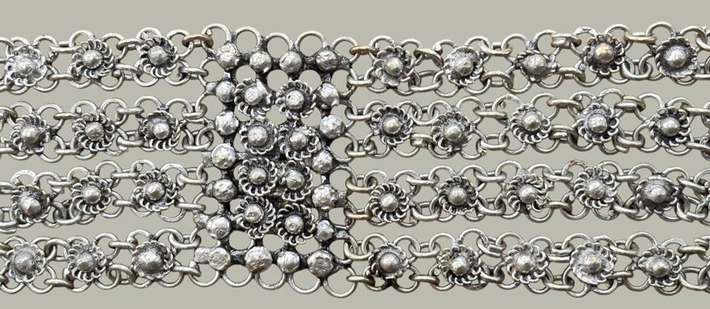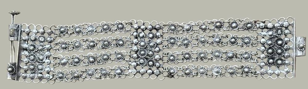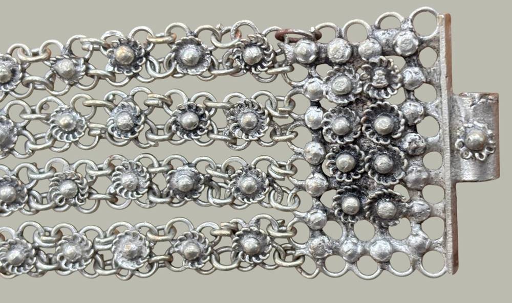 breites, vierreihiges altes Armband, versilbert, wohl Indien, L-20 cm, B-4 cm [1]