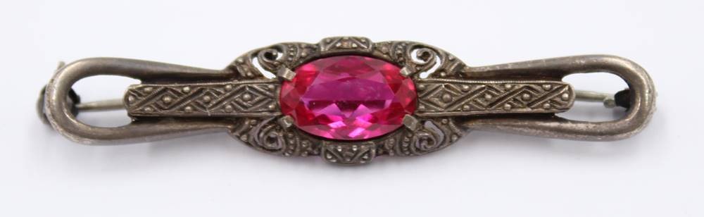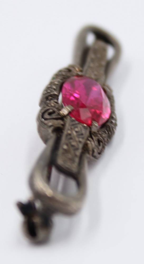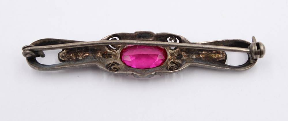 Broche, 925er Silber, älter, lila Glasstein, 6,1gr., L-5,2cm [1]