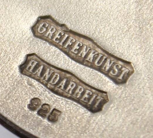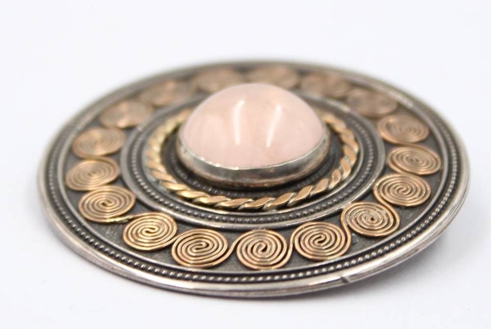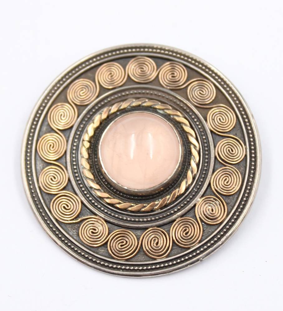 Brosche/Anhänger im nordischen Stil, mittig Rosenqarz, 925er Silber, Greifenkunst, 18,1gr., D-4cm [1]