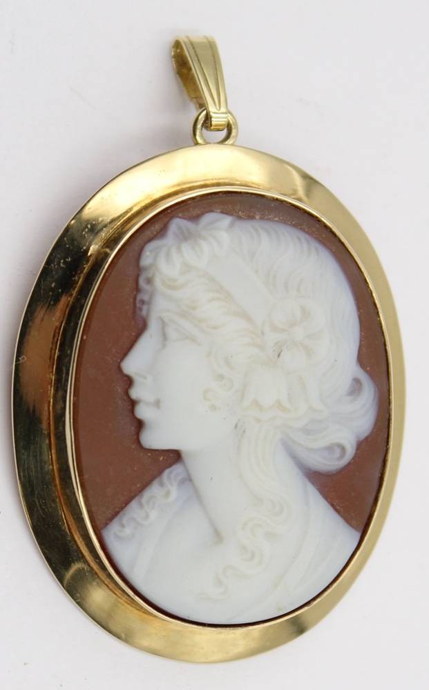 Brosche bzw. Anhänger mit Camee, Goldfassung-585-, 4,5x3,5 cm, 15,9 gr