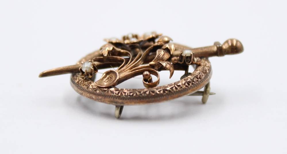 Brosche um 1900, wohl Schaumgold, Saatperlchen, 3,5 x 2,5cm [1]