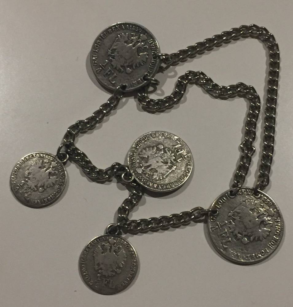Charivari - Trachtenkette mit 5x 1/4 Florin Münzen, 1859 datiert [1]