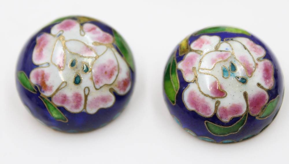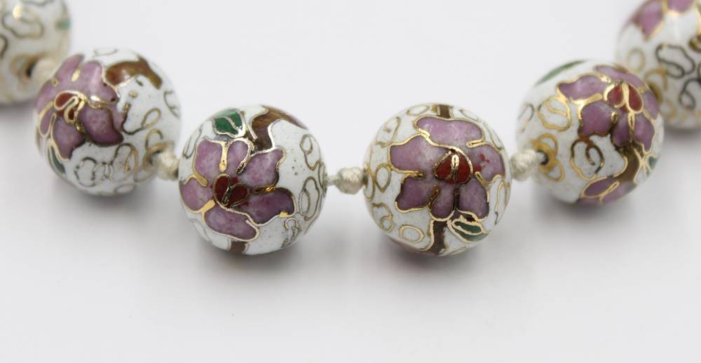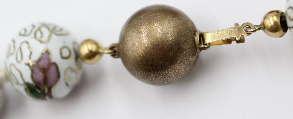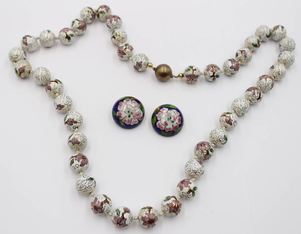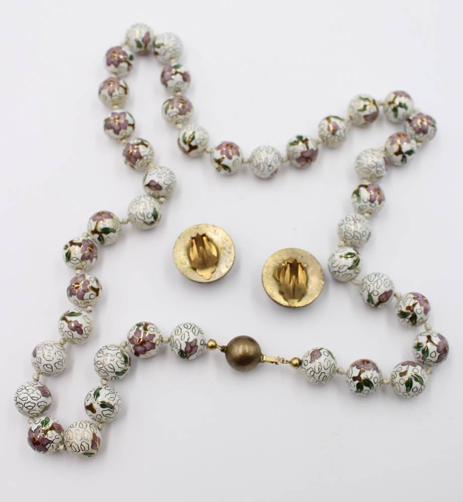 Cloissoné-Kette, 925er Silberschließe vergoldet sowie Paar Ohrclips, ca. L-70cm, Clips D-2,5cm [1]
