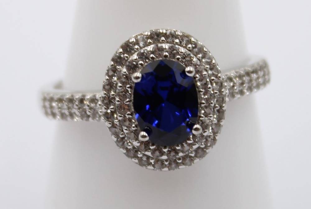 Cocktailring aus 925er Silber mit einem dunklen blauen Stein, 3,4 gr., RG 60 [1]