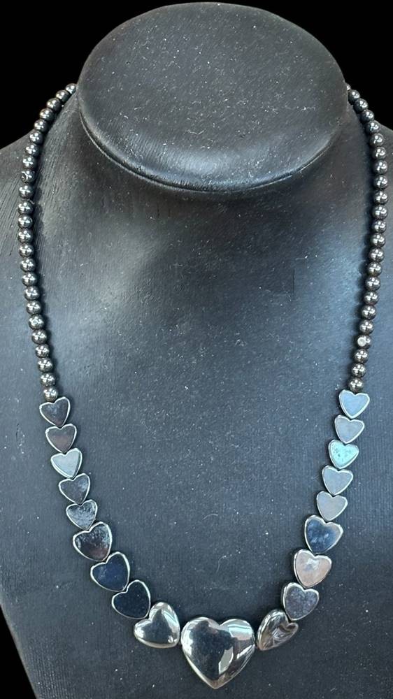 Collier aus Hämatid/Blutstein mit Silberschliesse-925-, L-ca. 42 cm, 31,4 gr