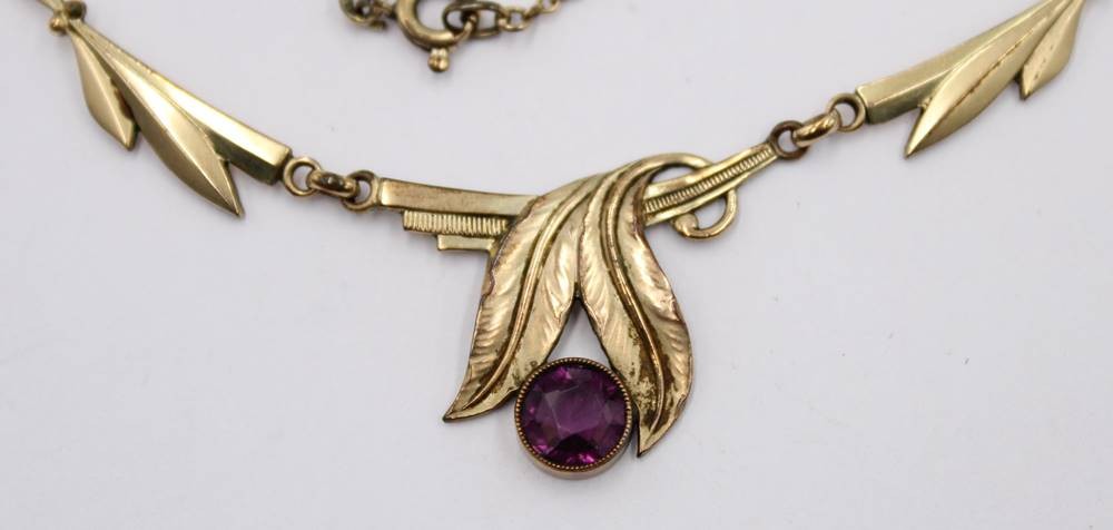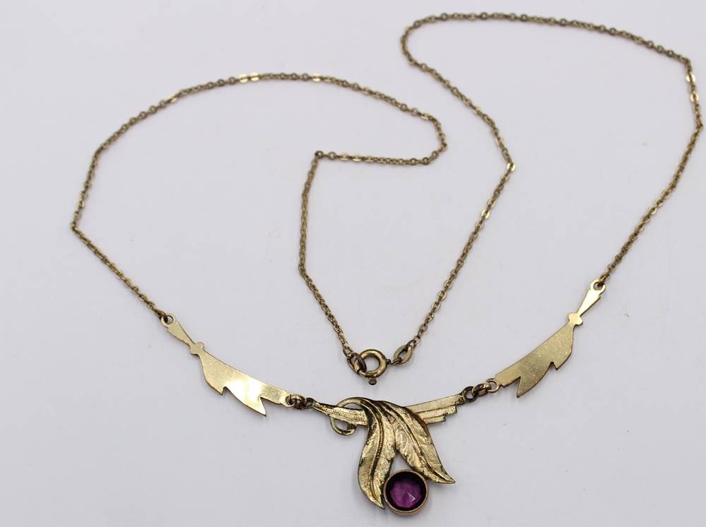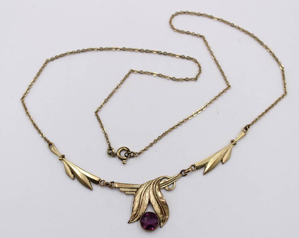 Collier, Doublé, lila Stein, älter, ca. L-46cm [1]