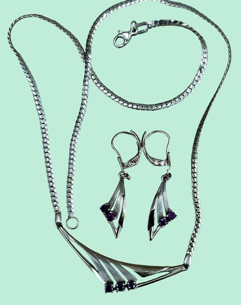 Collier mit Paar Ohrhängern, Americ. Double mit roten Steinen