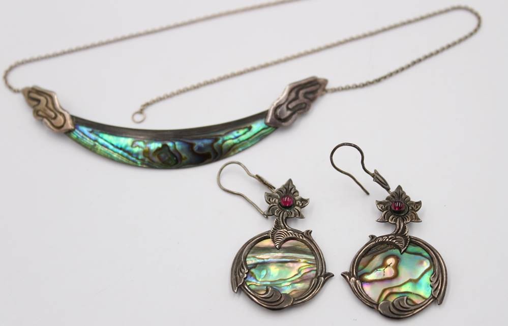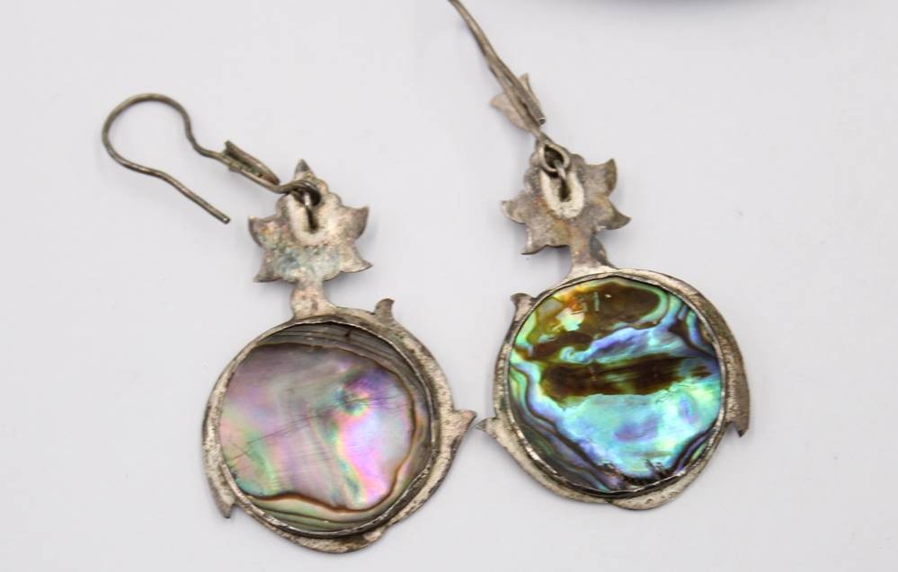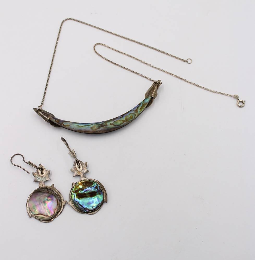 Collier sowie passende Ohrhänger, Silber, Abalone-Muschel, ca. L-43cm und L-5,8cm, 13,3gr. [1]