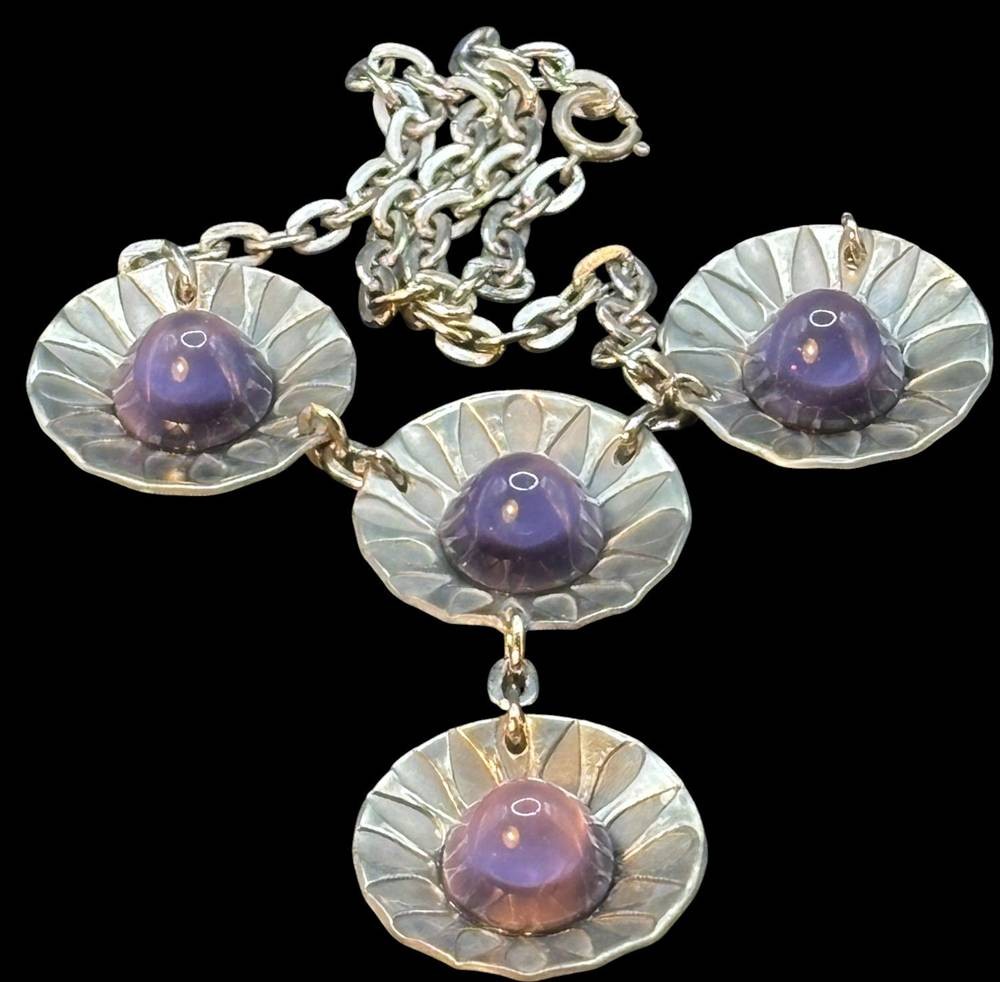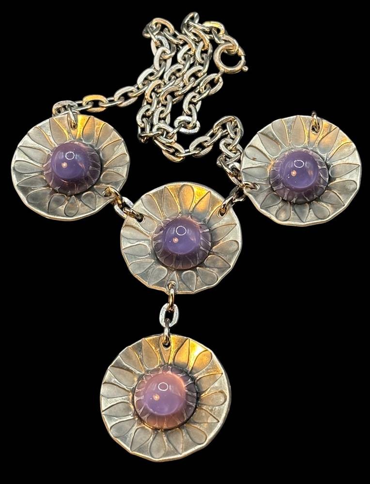 Collier von Jorge Jensen, Danmark, Zinn versilbert mit Amethyste, L-ca. 50 cm, 49 gr [1]