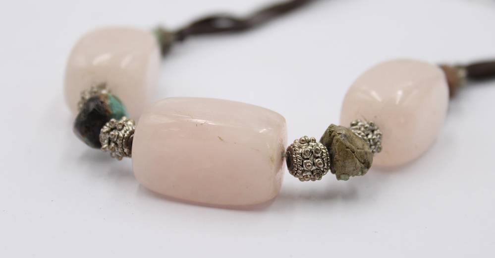 Collierkette, wohl Modeschmuck, gr. rosa STeine (Rosenquarz?), ca. L-42cm