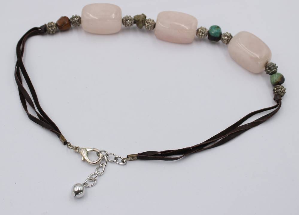 Collierkette, wohl Modeschmuck, gr. rosa STeine (Rosenquarz?), ca. L-42cm [1]
