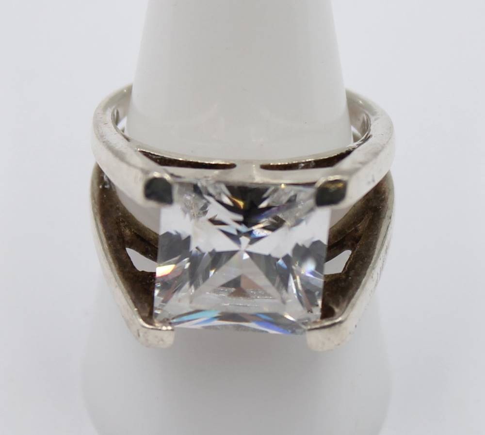 Damenring mit einem weißem Stein, 925er Silber, RG 59 , 11,4 gr. [1]