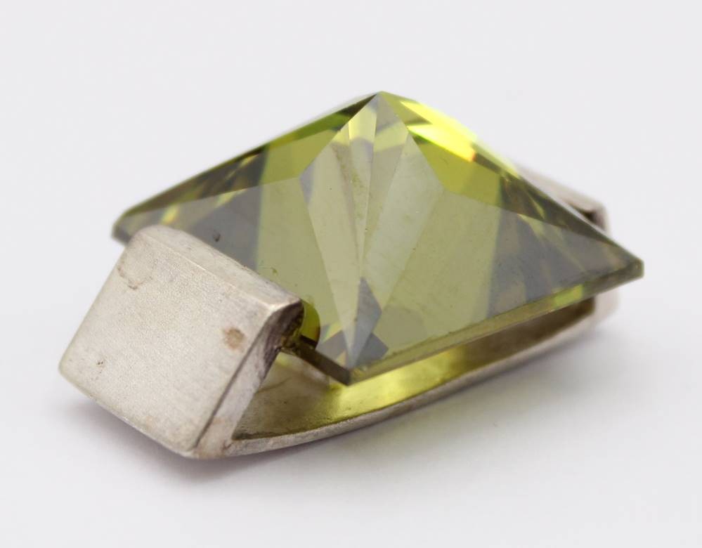 Design-Anhänger, Yvette Ries, 925er Silber, grüner Stein, 20,4gr., 3 x 2cm [1]