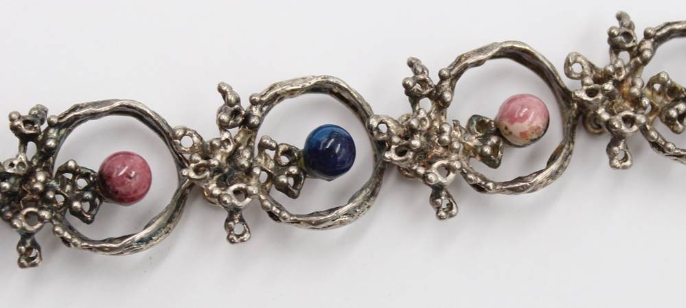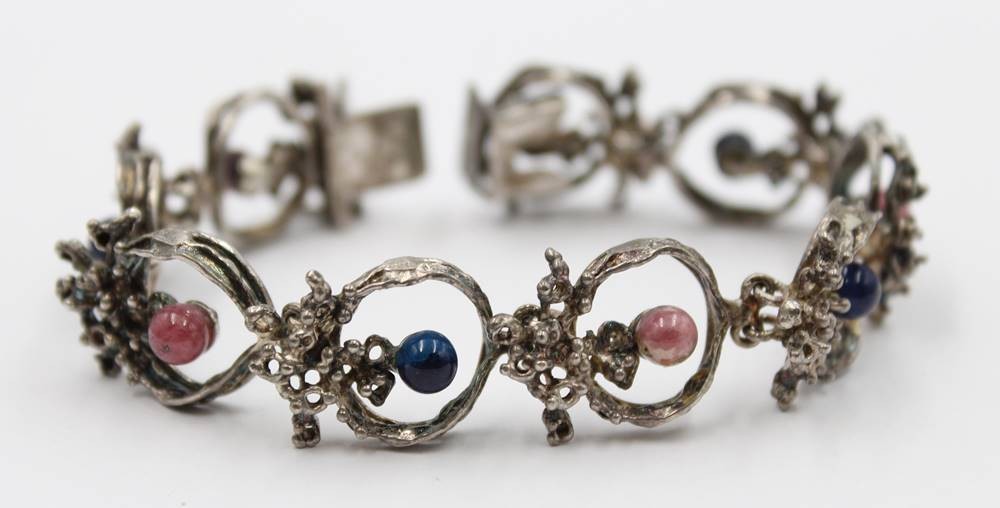 Design-Silber-Armband, Rosenquarz und Amethyst, ca. 33,2gr., L-18,5cm [1]