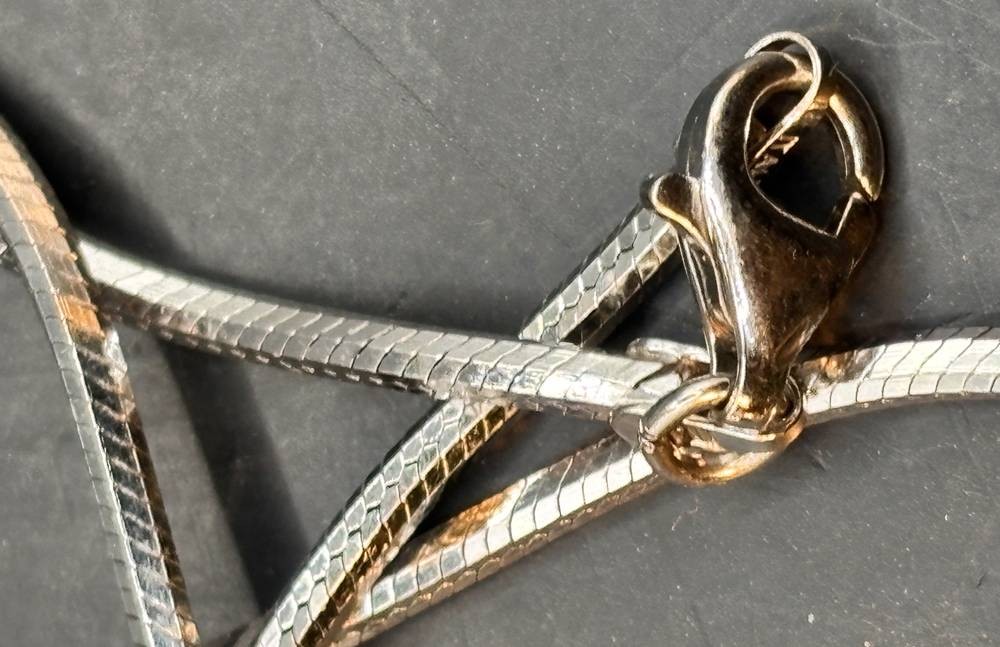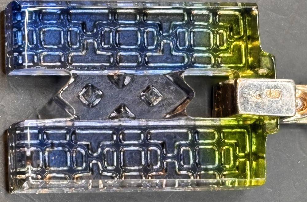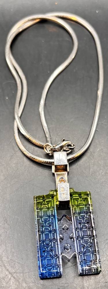 Designer Halskette, Silber-925-, undeutl. gemarkter Glasanhänger, aber wohl Swarowsky, L-42 cm, Anhänger H-5 cm [1]