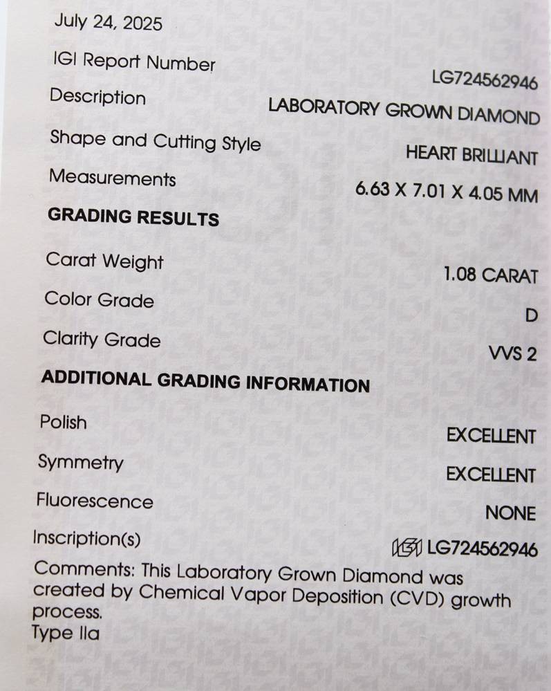 Diamant, Herzform, 1,08ct, Labor erstellt, anbei IGI Zertifikat [1]