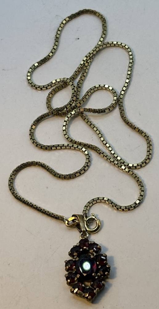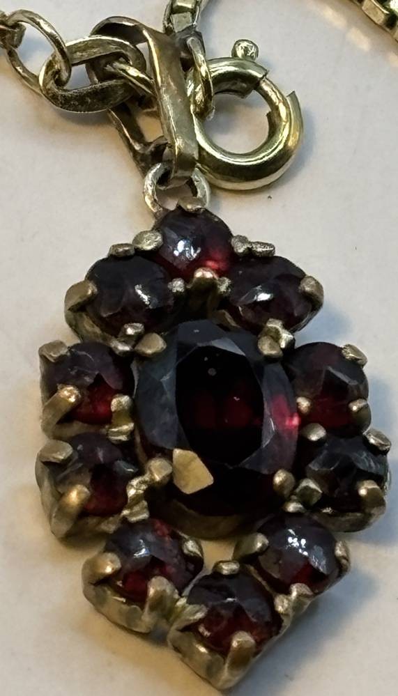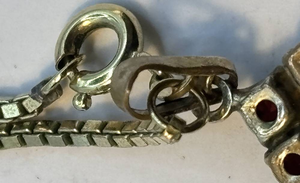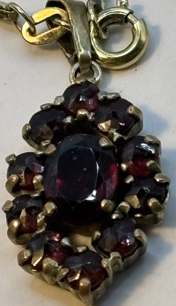 Double Kette mit Anhänger, rote Steine [1]