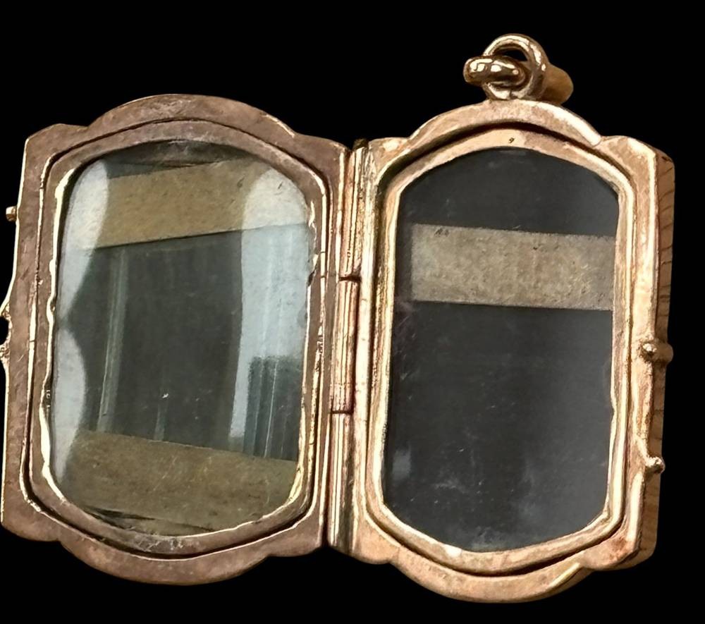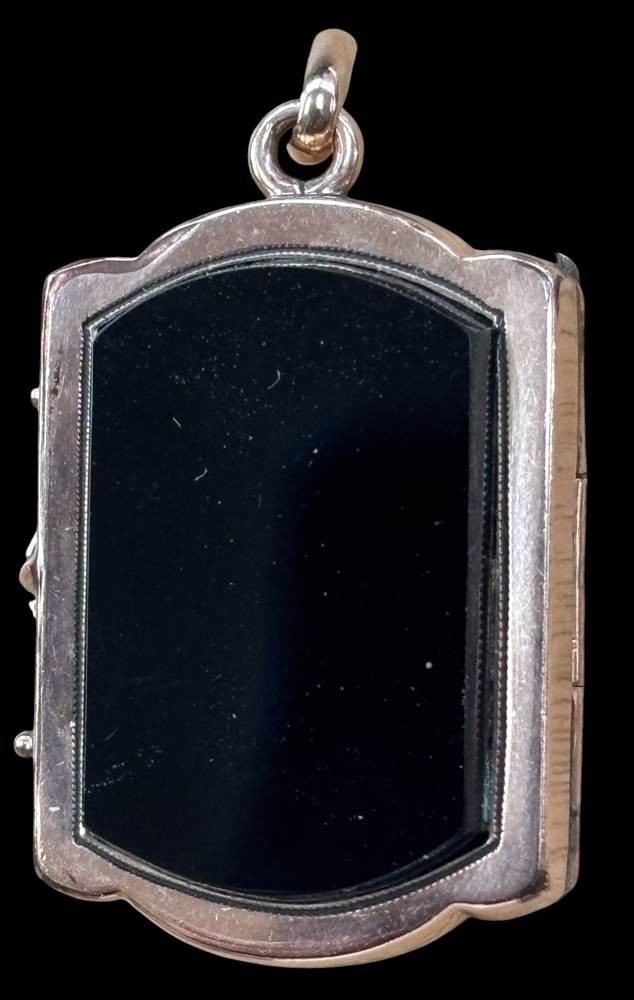 Double Medaillon, schwarze Onyx-Platte mit Krieger-Kopf, ca. 3x2 cm, 11,2 gr.