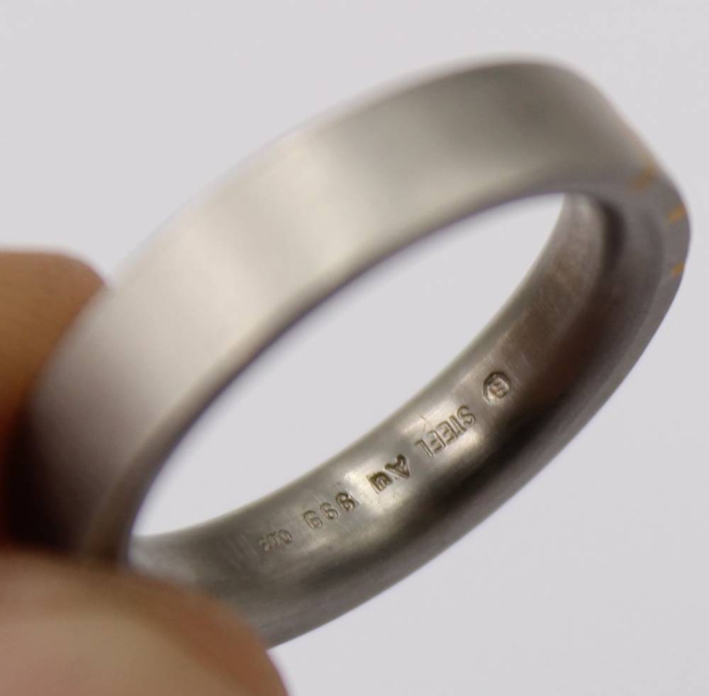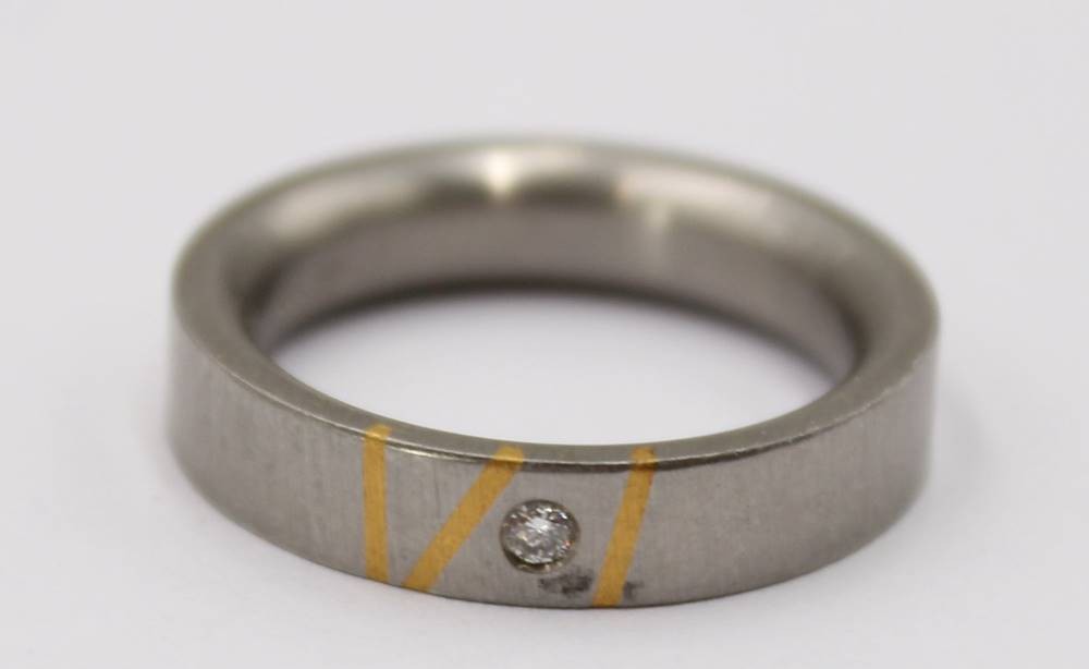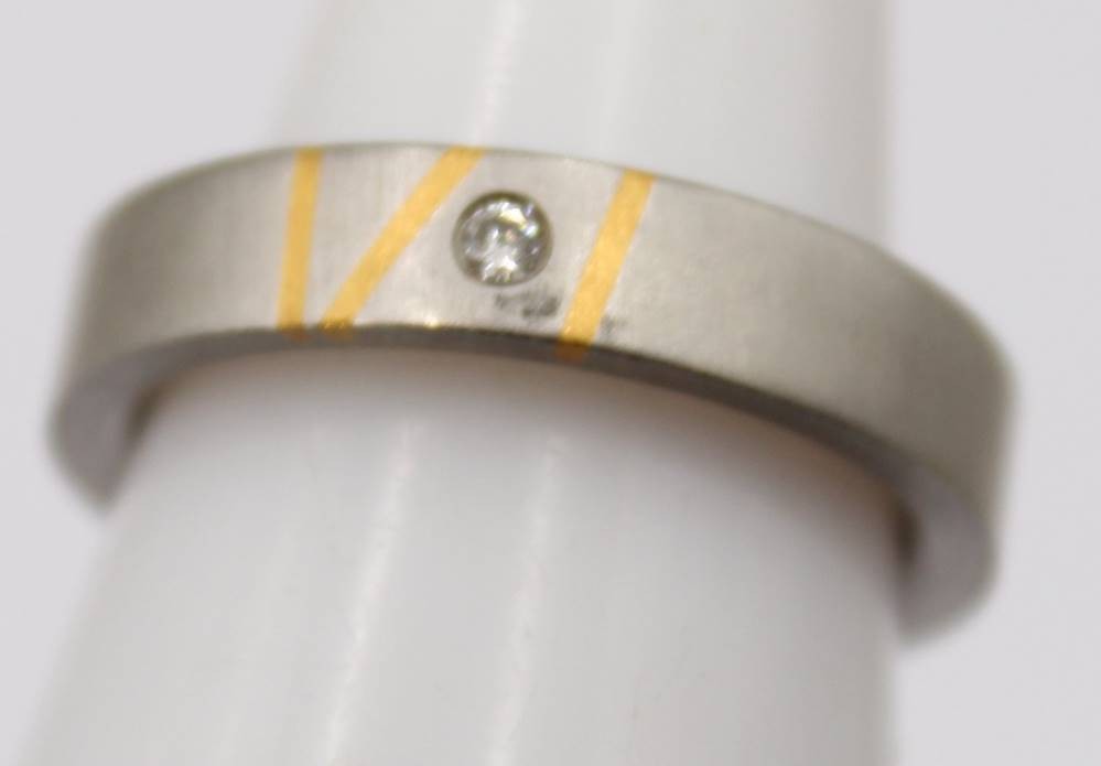 Edelstahl Ring mit Gold 999 und Diamant 0,03 ct., RG 53, 4,8 Gramm [1]