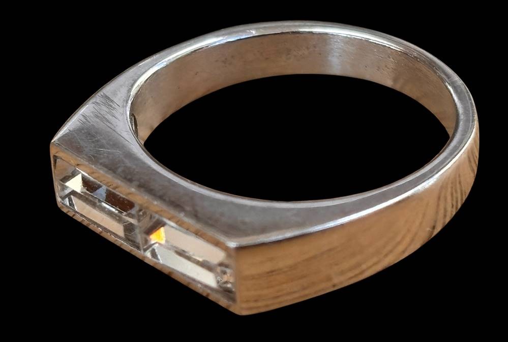 Edelstahl-Ring, undeutliche Marke, RG 56, 2 klare Steine [1]