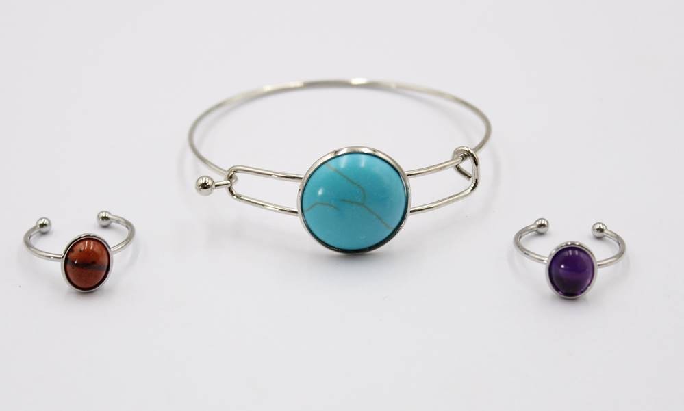Edelstahl-Schmuck, 3 Teile, div. Steinbesatz [1]