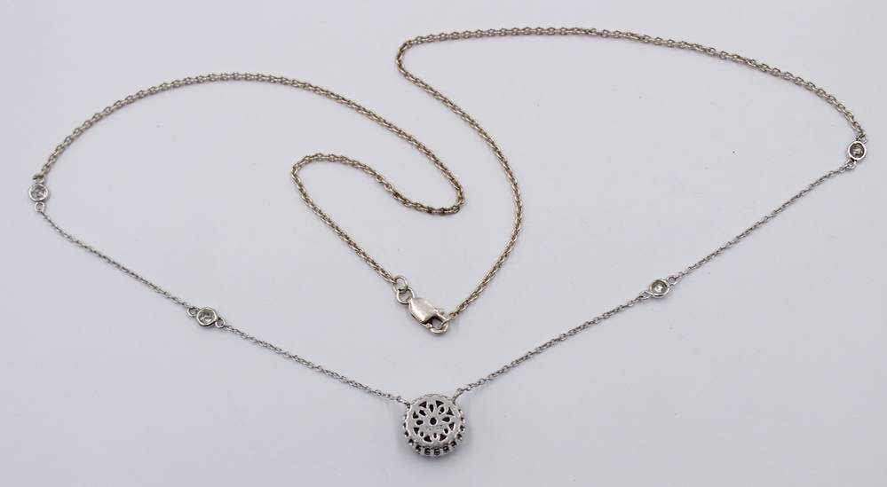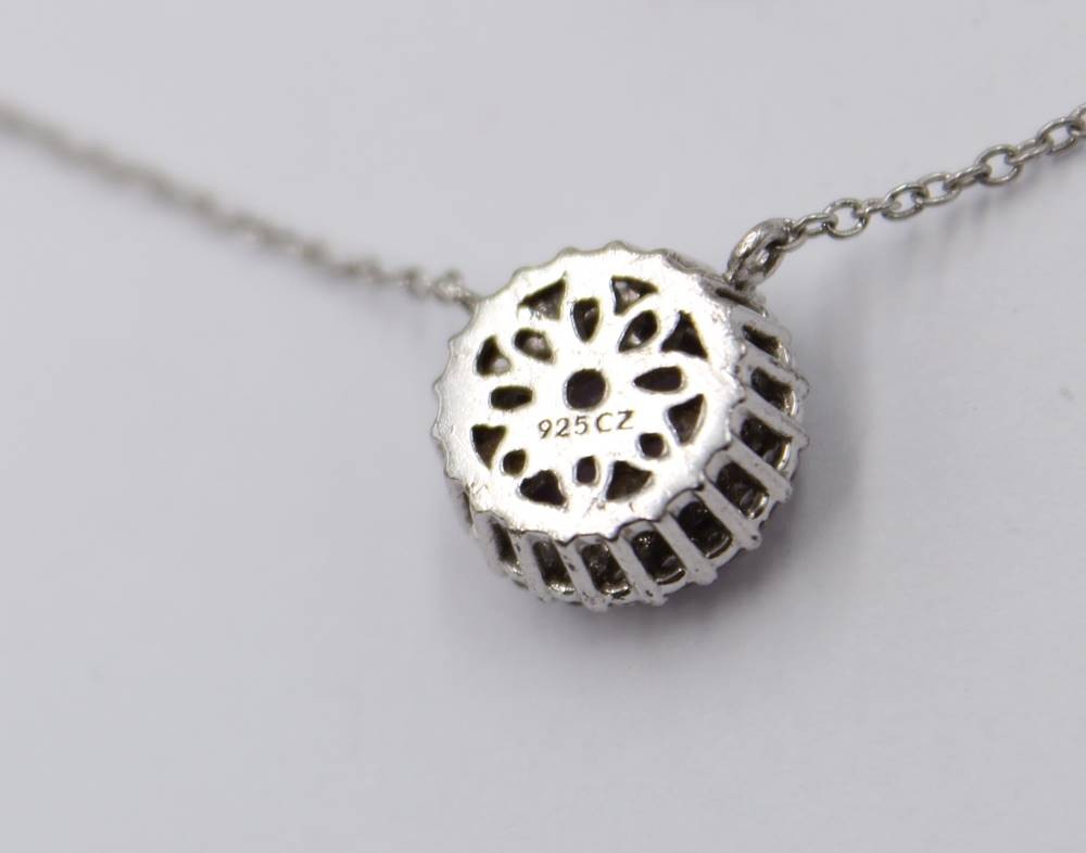 Ein kleines Collier Silber 925 CZ , Lila-Stein umringt von kleinen Weißen . [1]