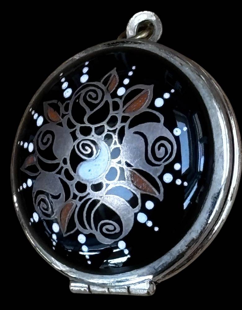 emailliertes Medaillon, wohl nur versilbert, D-3 cm
