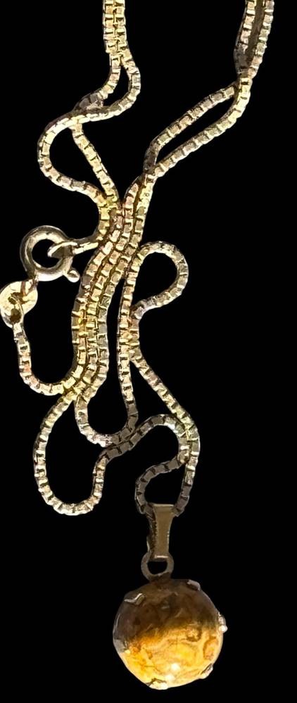 feine Silberhalskette mit Anhänger, brauner Stein, beide-925-, L-40 cm, 5,4 gr. [1]