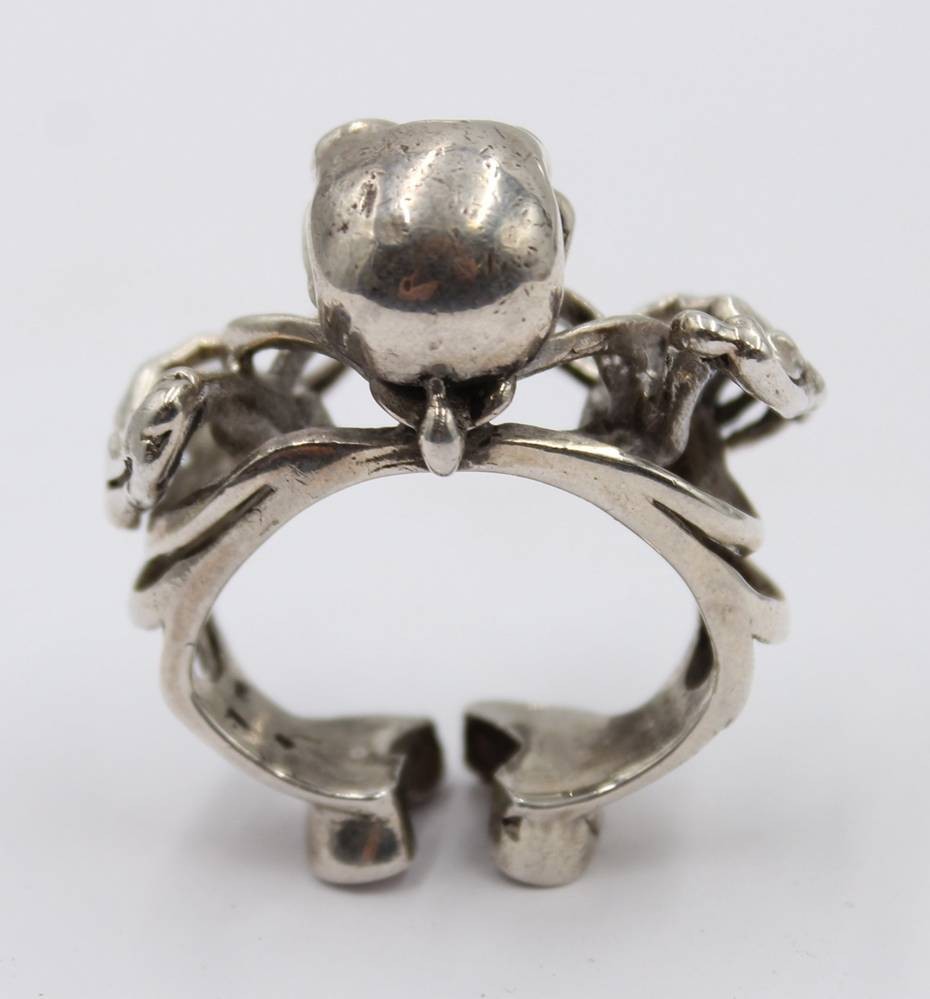 figürlicher Silber-Ring, Skelett, 35gr., offene Schiene