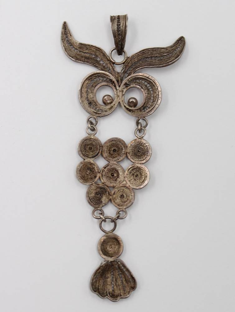 filigran gearbeiteter Silber-Anhänger, Eule, 4gr., L-7cm [1]