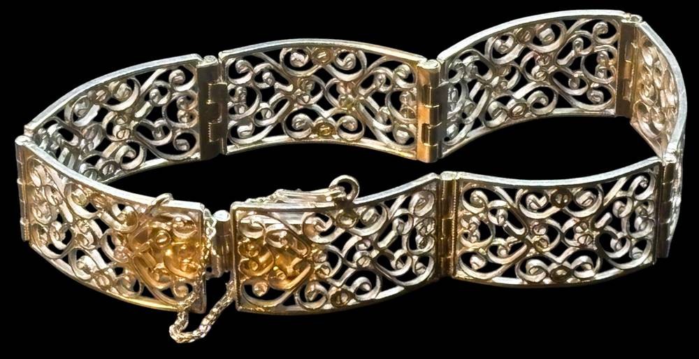 filigran. Silber-835-, Kastenschliesse mit Sicherheitsband, 17 gr., ca, 18,5 cm [1]