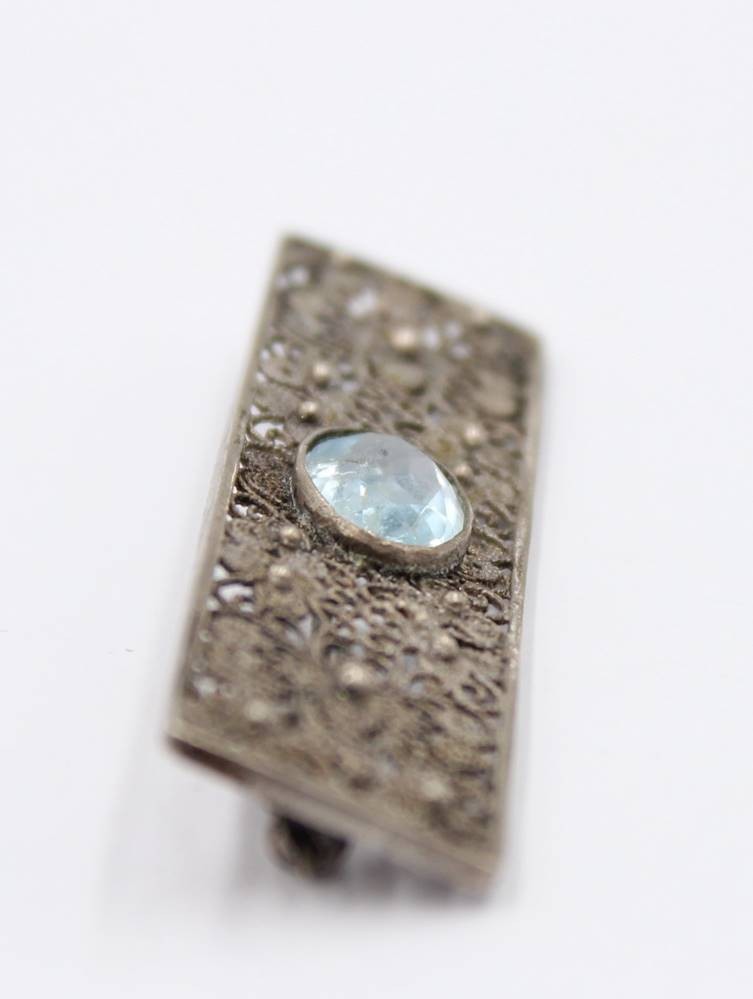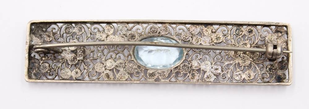 filigrane Silberbrosche, älter, hellblauer faccett. Stein, 6gr., L-6,2cm [1]