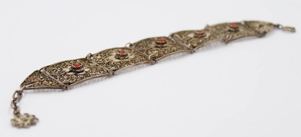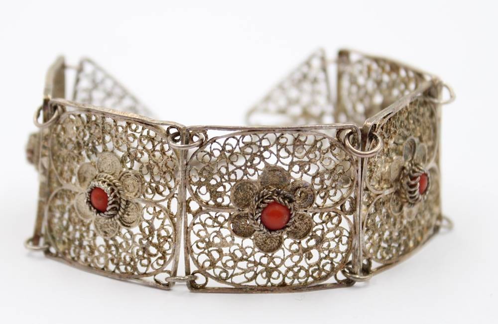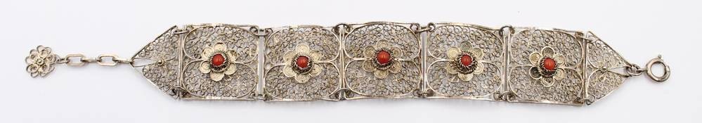 filigranes Armband, Silber (gepr.) mit Koralle, 23,3gr., L-21cm, B-2,7cm [1]