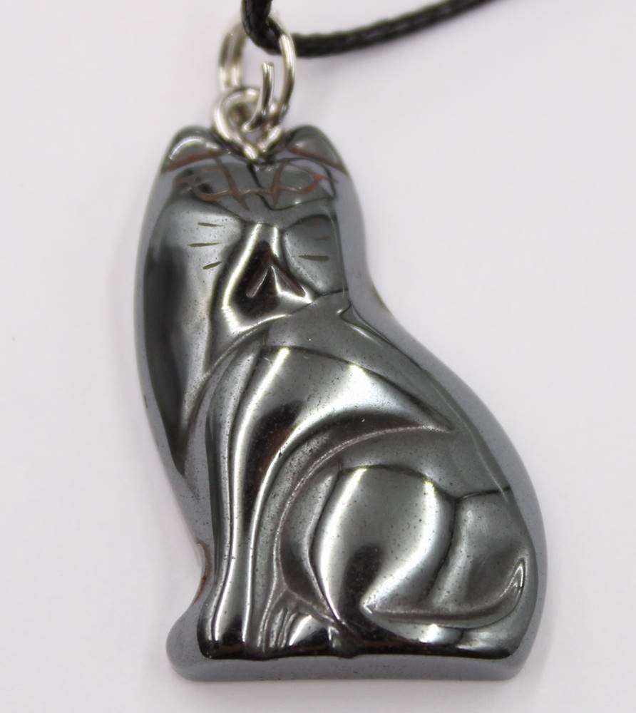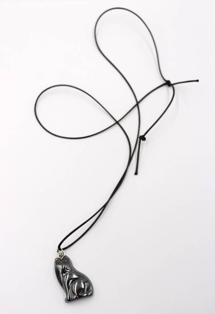 fiürlicher Hämatit-Anhänger Lederband, Katze, Anh. L-3,5cm [1]