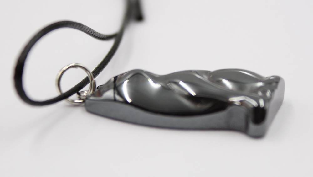 fiürlicher Hämatit-Anhänger Lederband, Katze, Anh. L-3,5cm