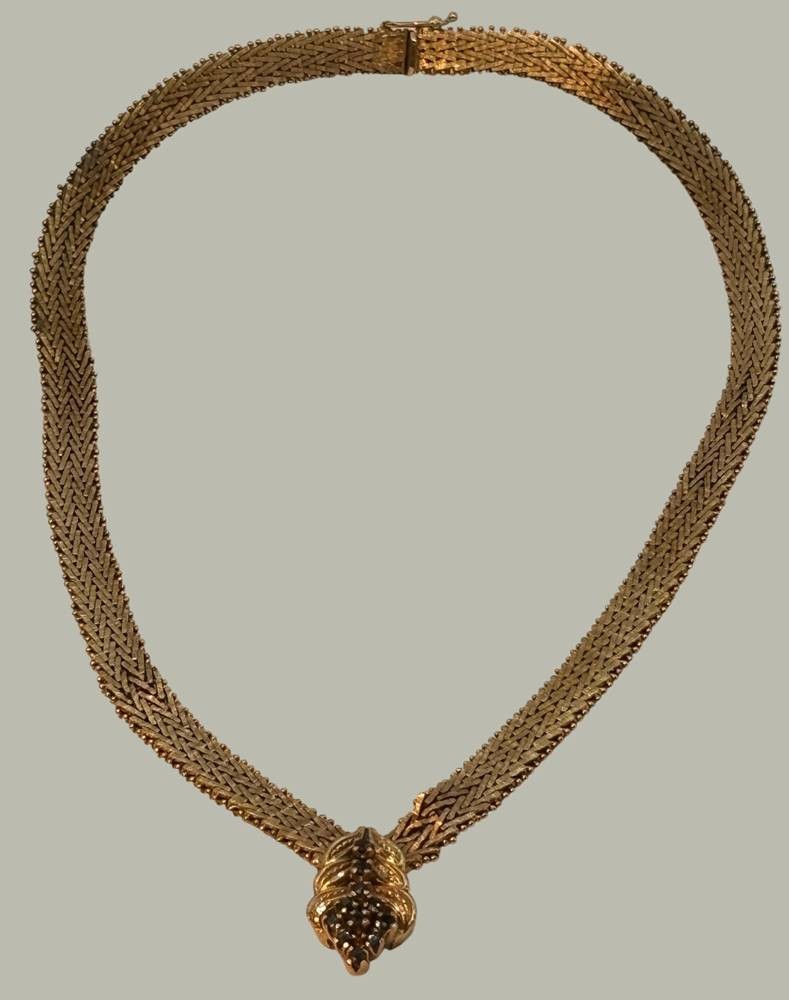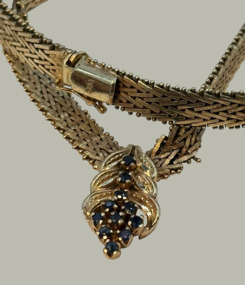 flaches Collier, Silber-835-, vergoldet, Safire, L-ca. 42 cm, 37 gr. [1]