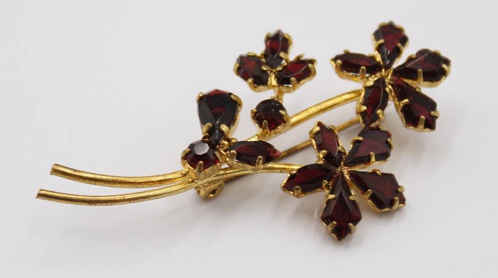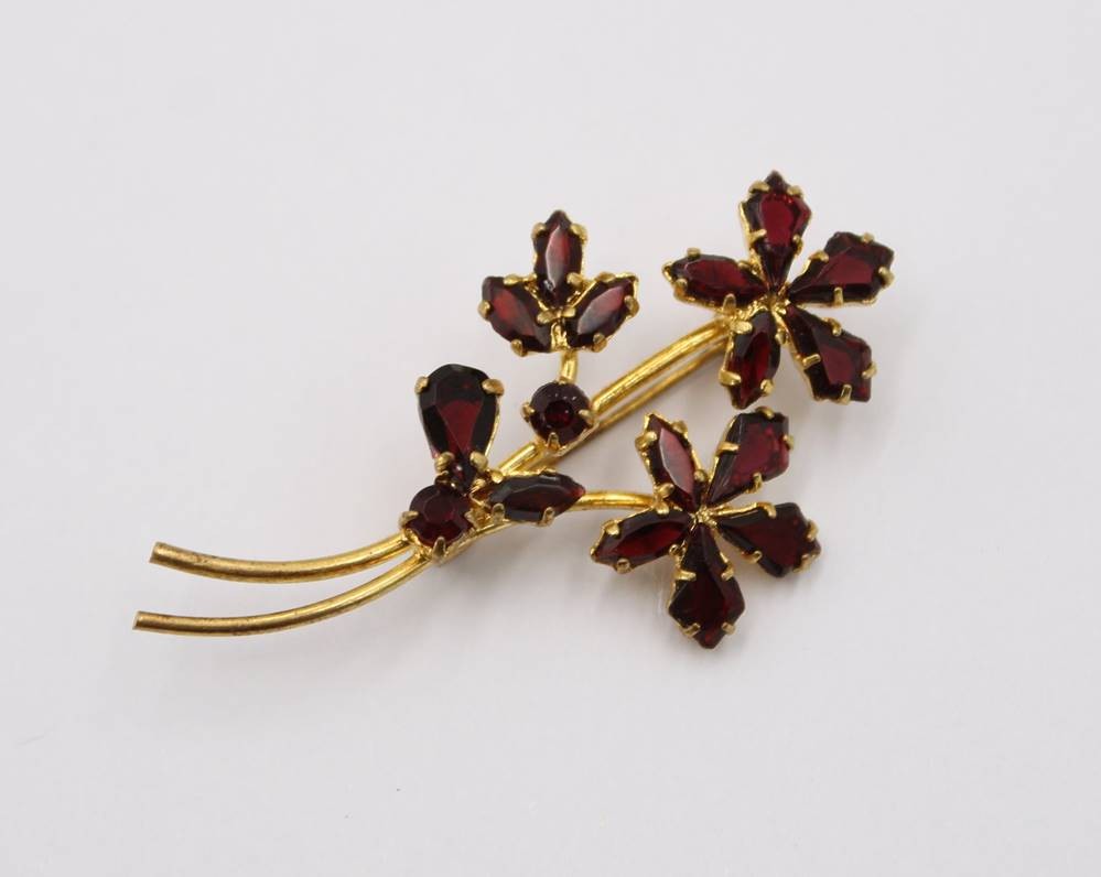 florale Brosche mit Granat, ca. L-5cm [1]
