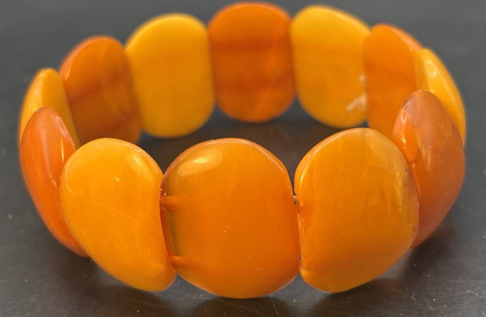 gelb-braunes Zugarmband, Bernstein, H-ca. 2,5 cm, 23 gr. [1]