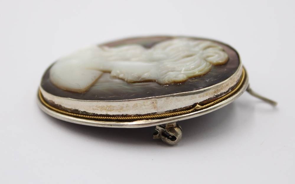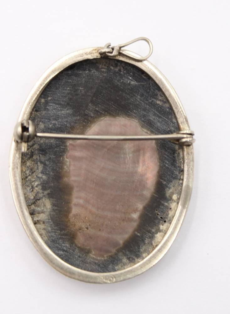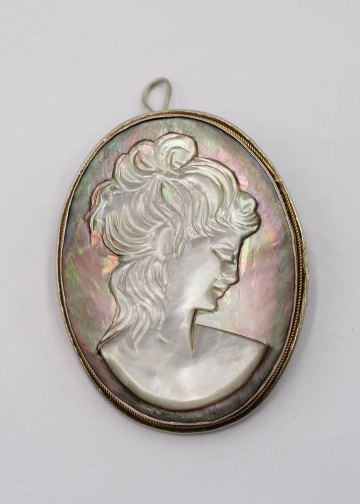 Gemme aus Perlmutt, älter, 800er Silberfassung, ca. 4 x 3cm