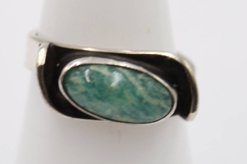 Georg Kramer Ring, 835er Silber, mit einem grünem marmorierten Stein, RG 53, 4,0 gr. [1]