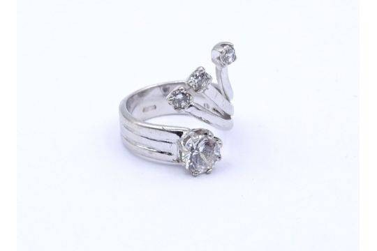 Losnummer 1224 - Geschwungener Silber Ring 0.925 mit Zirkonia, 7,1g., RG 54