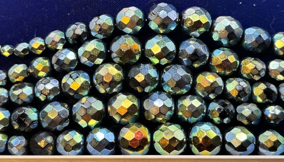 Glasperlen Collier, irisierend, wohl Böhmen, 5-reihig mit grosser Schliesse, wohl Gablonz? in Kasten, 50/60-er Jahre