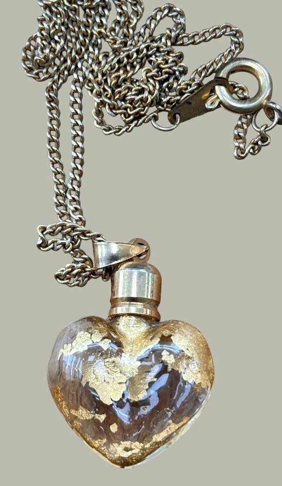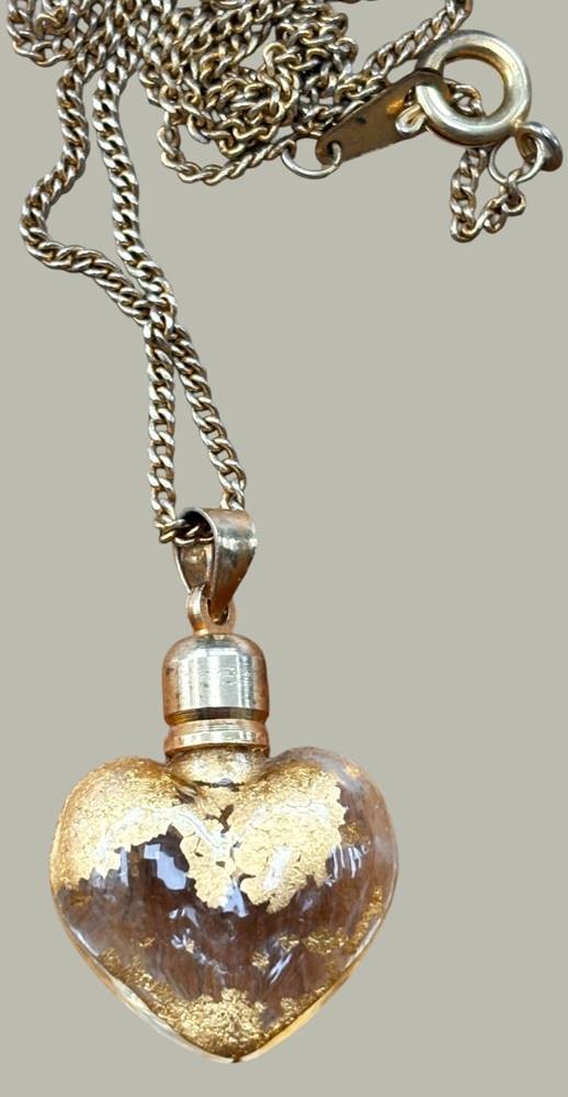 Goldkette mit Herz: Glas-Herzanhänger mit 99,9 K-Blattgold inkl. vergoldeter Kette (Herz Anhänger Glas), in orig. Schachtel [1]