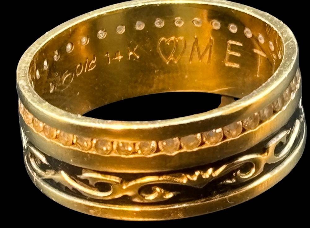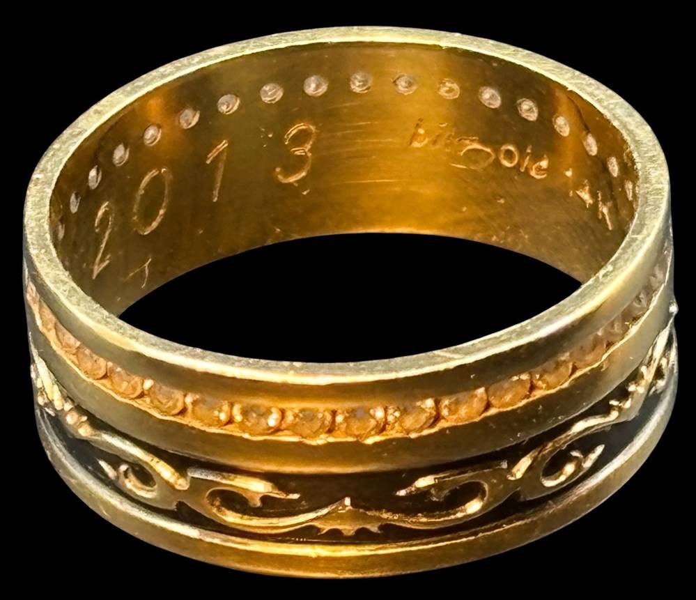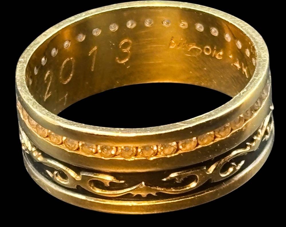 Goldring-585- mit klaren Steinen, RG 56, 4,7 gr, innen Gravur von 2013 [1]